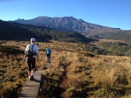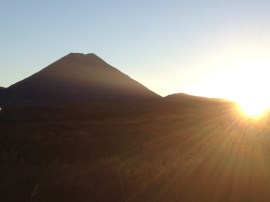 7am Saturday morning and the sun sneaks its way over the shoulder of Nguaruhoe. It’s going to be a beautiful day. Excited we don our heavy packs full of tasty trail food and the back-up kit that’s needed when heading out on a major mission like this.