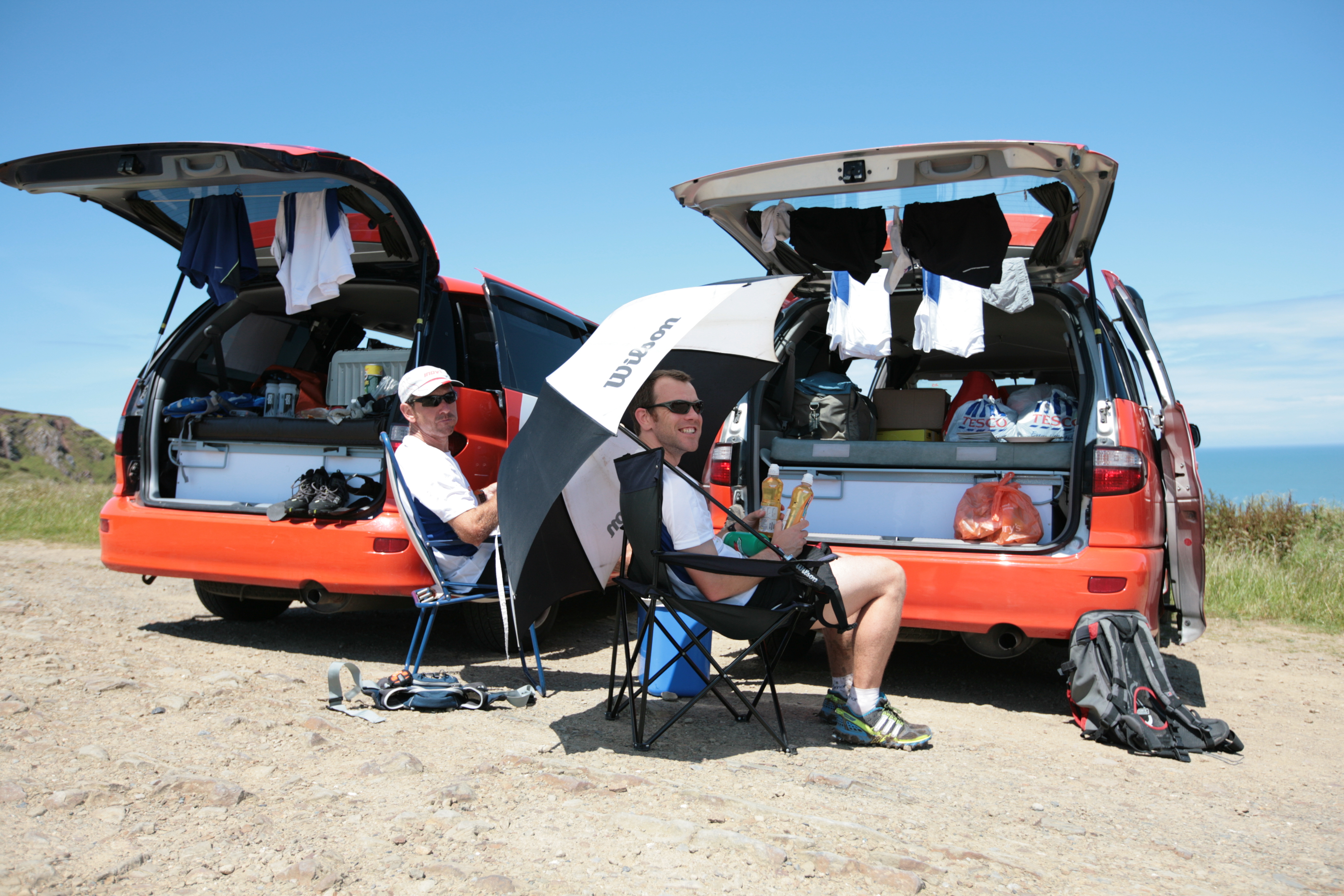 Still just a few days off the plane from California, where I’d stopped en route to run a marathon through the giant redwood forests south of San Francisco, my body clock was in disarray and sleep had been hard to come by. Starting this mission already dog tired wasn’t ideal but after a hearty Condemned Man’s Breakfast at our hotel in Porlock and a short drive by Spaceship to the start on the esplanade in Minehead, I was feeling relaxed and eager to get going. We got a great sendoff from family and friends, including both my sisters (one of whom had come all the way from California to be there).