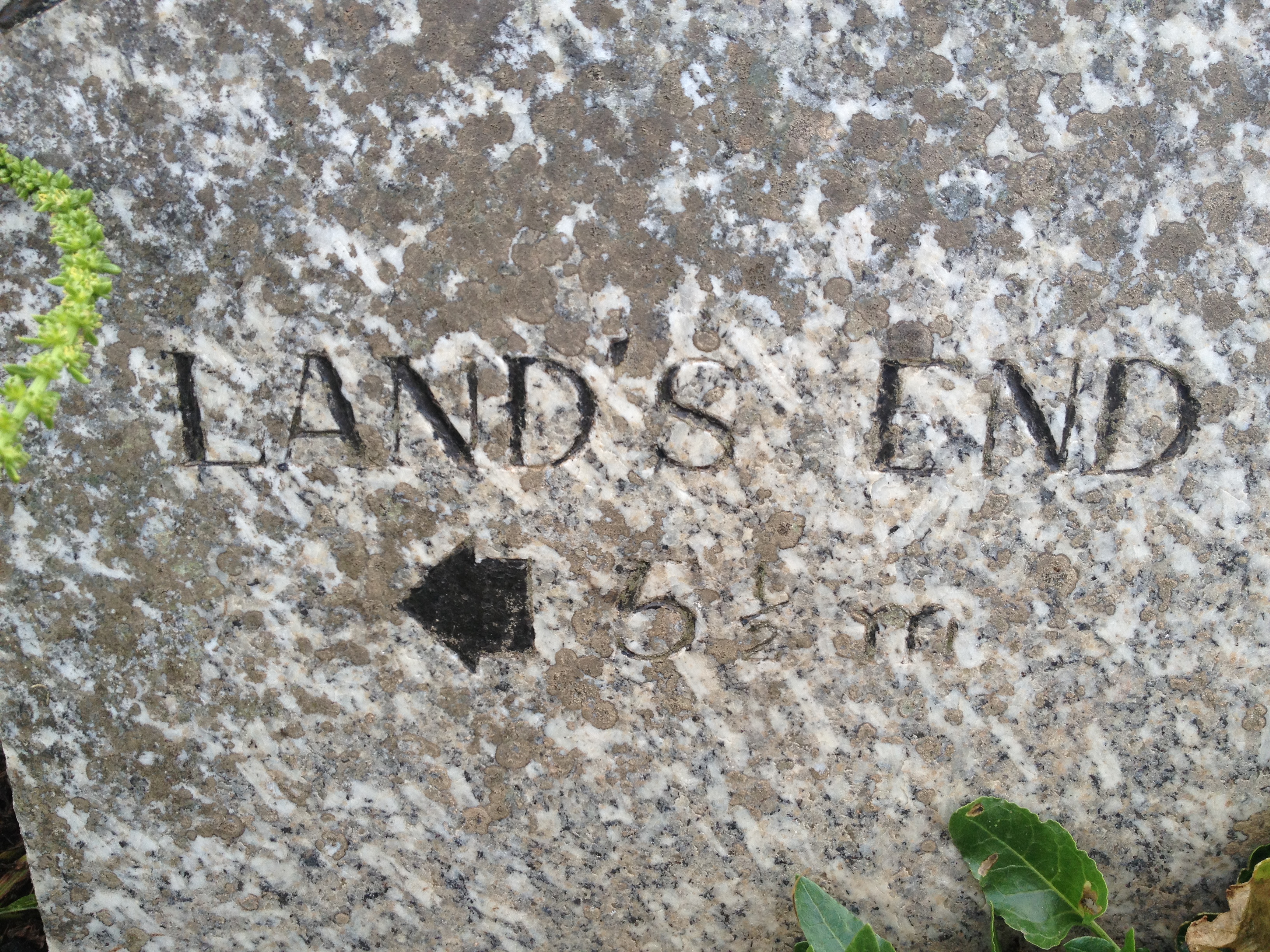 As we left for the last leg of the day Tom was in a lot of pain from seized quad muscles. No amount of stretching seemed to help and our pace slowed considerably. We ran/walked through a massive complex of old tin mines and on towards Cape Cornwall, en route passing the first signpost for Land’s End and gaining our first glimpse of this pivotal point in our journey.
