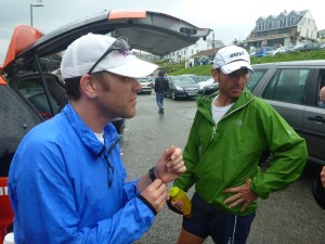Our ‘reward’ at the end of it was a long detour inland through the town of Hayle, consisting of building sites and tarmac surfaces. When we finally reunited with the support crew I was feeling about as low as I’d been at any stage. With my left foot up on the chilly bin, icing my achilles, I browsed messages of support that had come in on Facebook. As happened whenever I could access these my spirits soared and my determination doubled.