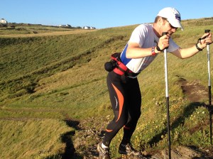 The final few hours of this memorable day were bitter-sweet. For me it was one of the highlights of the Path. In the warm, low light of a sunlit evening the surroundings were seductive, the trail good and my mood lifted immensely. But for Tom the pain just kept on coming. Once we rounded Lizard Point we thought we were just about there, but a misunderstanding about where the support crew were picking us up meant we had another tough hour of trail to knock off before we could call it a day. Tom was desperate and I was feeling desperate for him. But after almost 13 hours, 68kms and some 2,000m of ascent we made it to the tiny hamlet of Cadgwith. We had survived another day, just.