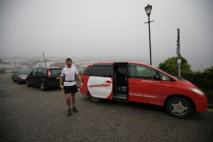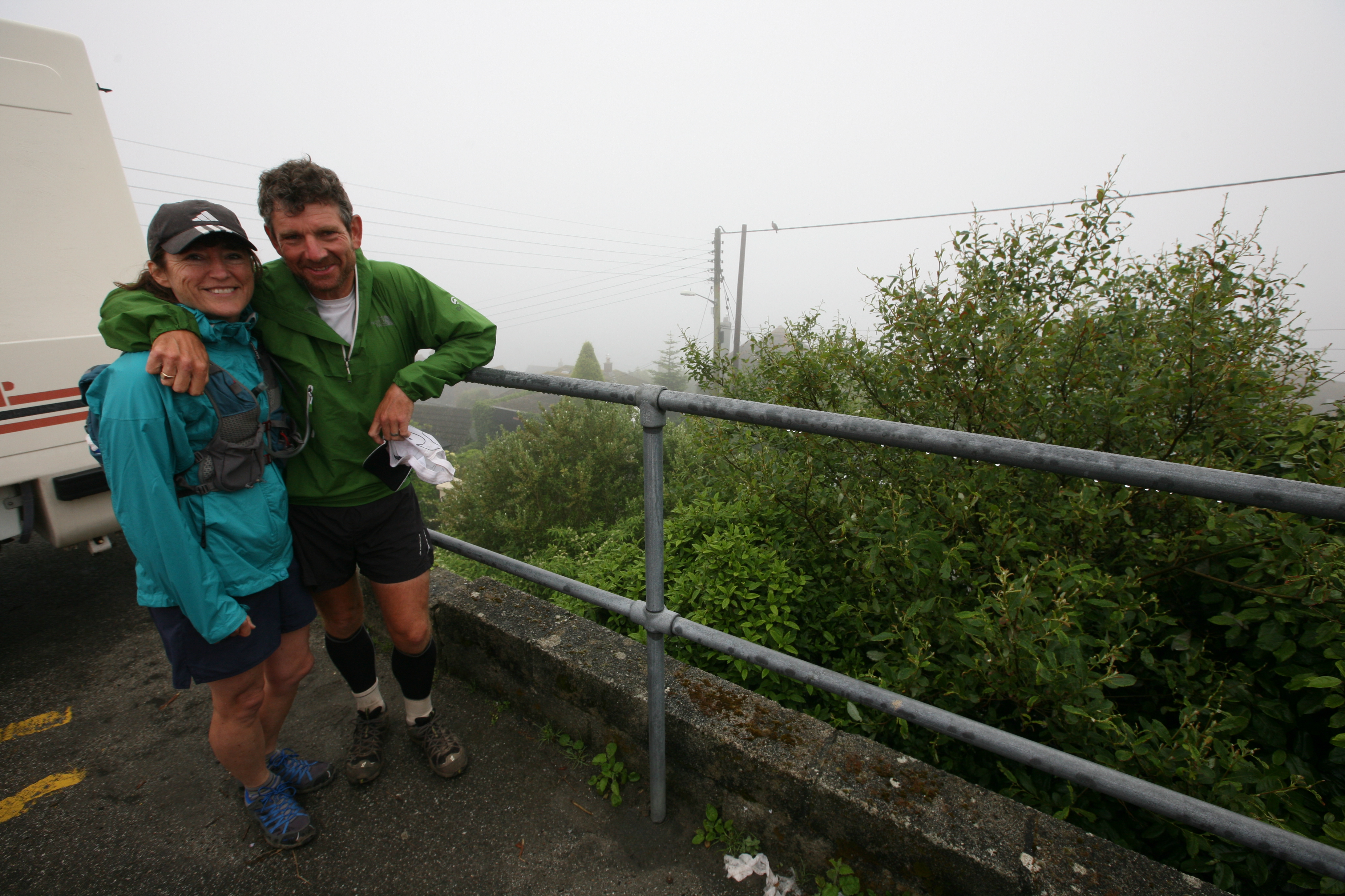 Briefly the cloud lifted and we enjoyed an hour of evening sunshine, but as we approached the day marker the shroud fell back over the land. Rounding this point we had just 5kms left to go to Fowey. I couldn’t get to it soon enough because I knew that waiting there, fresh off the plane from Auckland, would be my wife Sally and son Beinn. This thought had sustained me all day long and I think Tom was probably getting sick of me telling him how much I was looking forward to seeing them. Those last 5kms seemed to take forever, not helped by the fact that we were both in too much pain to do little more than walk. But at around 8.30pm, after another 12 hours on our feet, we were there. The hugs were worth the wait.