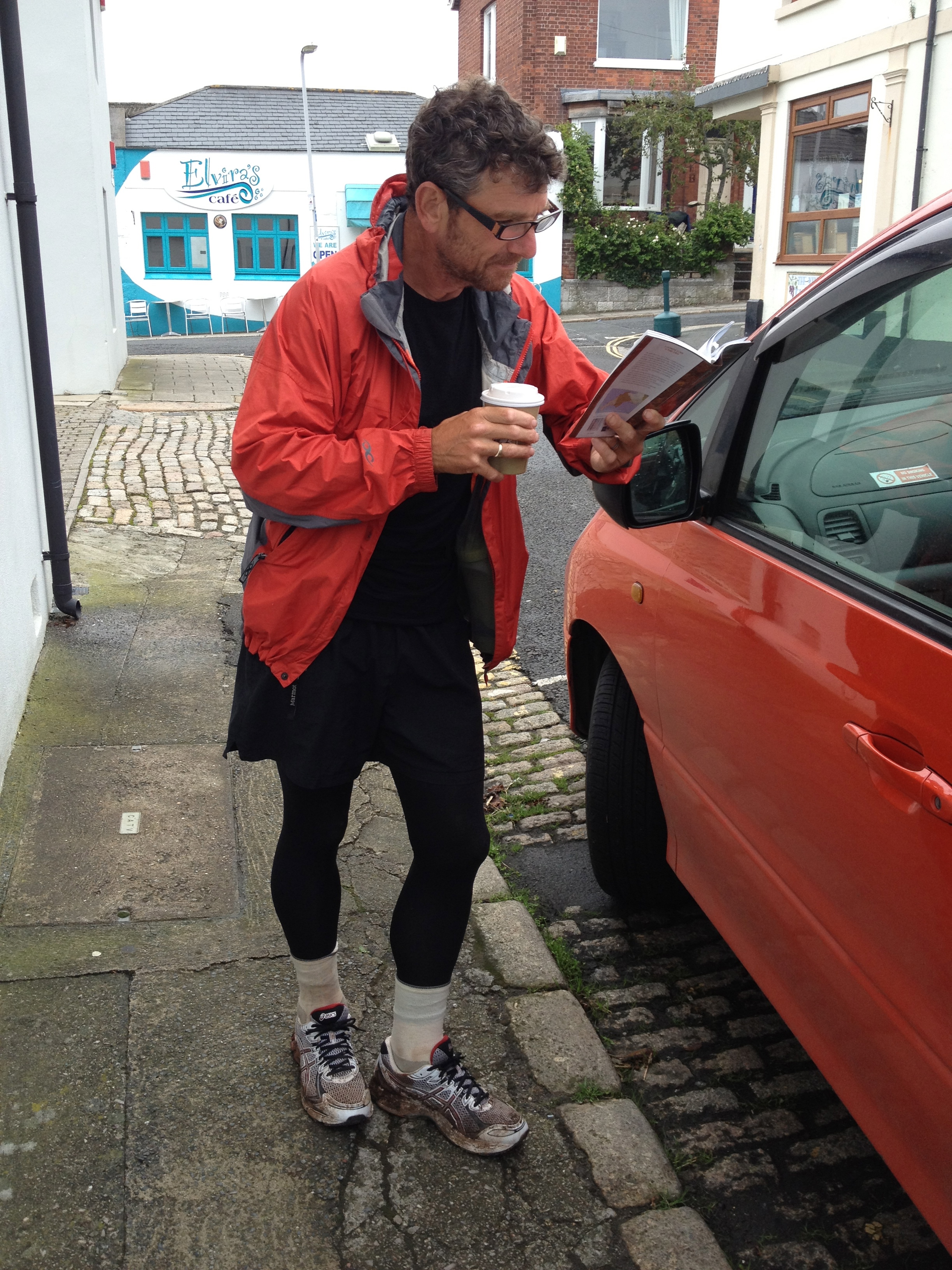 Studying the trail guide before heading off from Plymouth – a classic trail running image not!