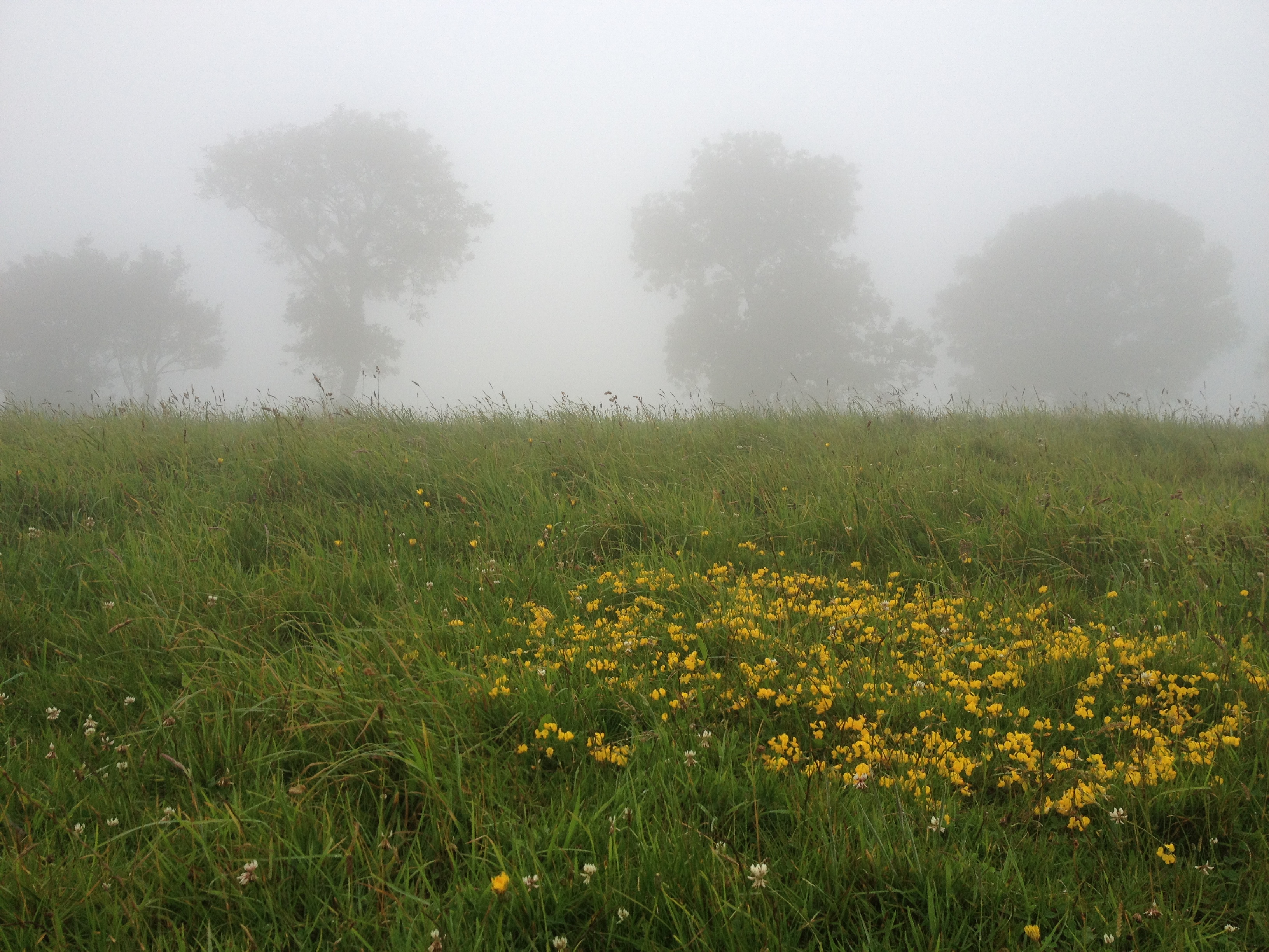 By the time we’d said our hellos and goodbyes it was 9.30am and ahead of me lay at least 13 hours on the trail. Time to get moving. I must have cut a pretty sad and pathetic figure as I trudged off down the deserted Esplanade, a lone presence in a grey, wet world. I climbed out of Exmouth to the sound of gun fire from another MOD firing range and around what must be the world’s biggest caravan park. I dropped into Budleigh Salterton and picked up Phil for the hilly section to Sidmouth, which we reached by late morning. We continued on, slow and steady, through our collapsed world that began and ended just metres in front and behind us as the low cloud enveloped all around us. It was eerie and strangely beautiful but I’d have swapped it for just a spot of sunlight at the drop of a hat.