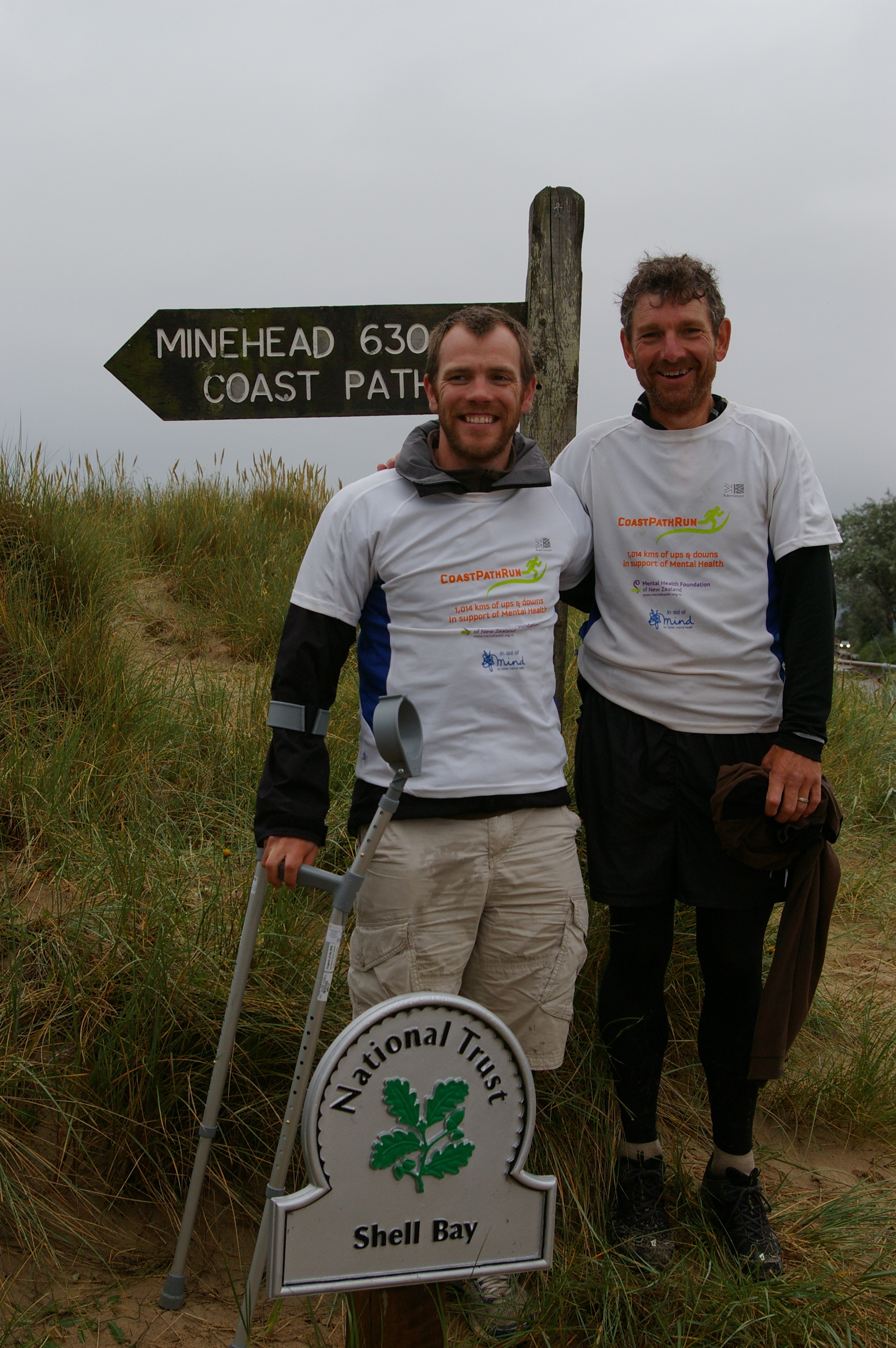 And speaking of strength, Tom was there at the finish, leaning sheepishly on his crutches. It was his dreaming, scheming and planning that had made this whole adventure possible. Every fibre of my being ached for him. It can’t have been easy to watch me finish without him, but with a great show of selflessness he was there to say “well done mate”. For that and for so much more I will always be grateful. Tom’s dream of running the entire length of the South West Coast Path may not have worked out as he wished, but his absence from the Path is temporary. He too has adopted the “never, ever give up” philosophy and he WILL go back and finish it once he is recovered from his injuries. Please join me in wishing him the very best of luck.