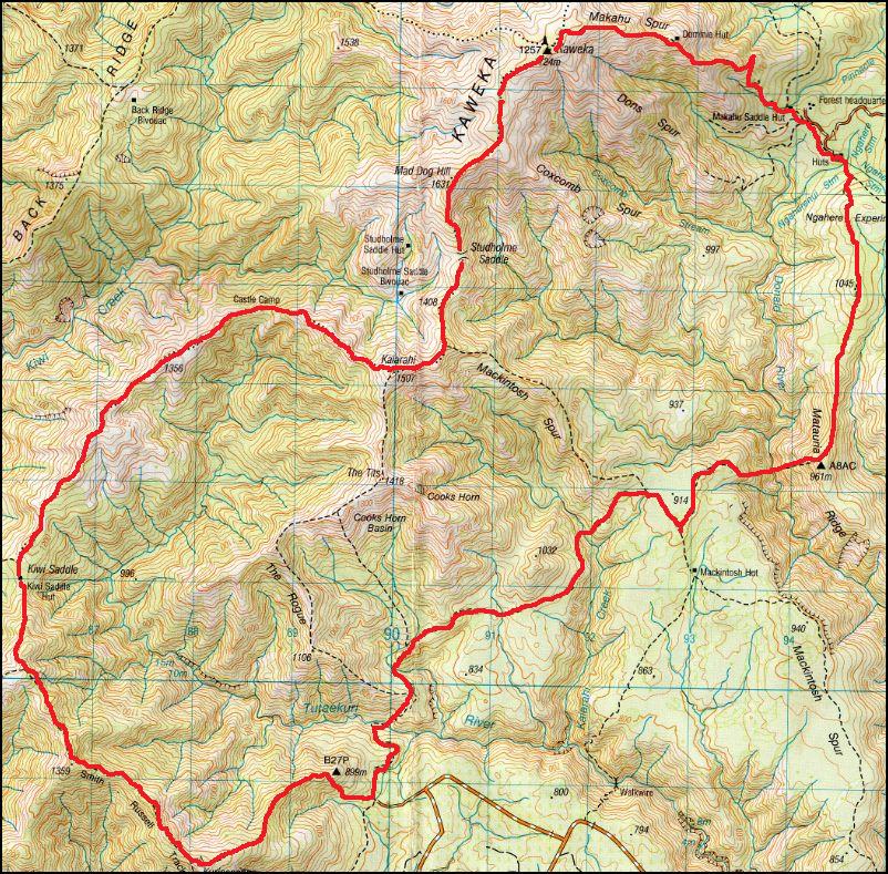 See this Guide in PDF format: Kaweka Classic Trail Guide